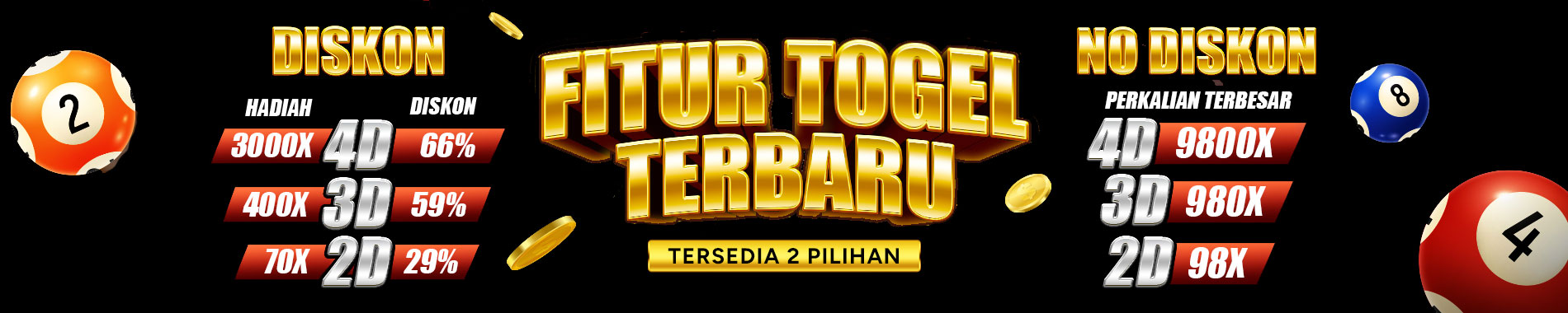 - Hadiah prize 2 : 4D = Rp. 150.000,- / 3D = Rp. 50.000,-